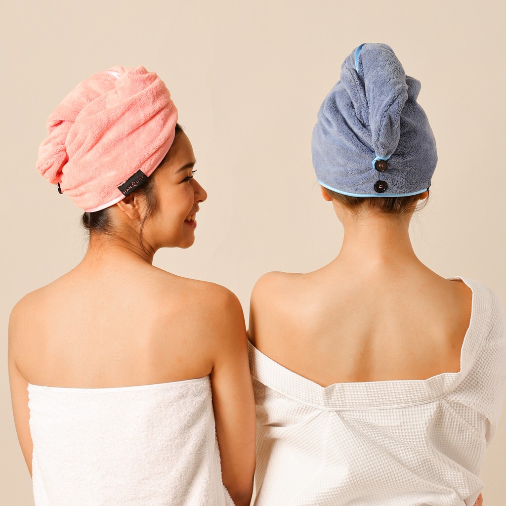A microfiber hair towel that fits in your head, helps you prevent hair damage, and reduces your hairdrying time.
